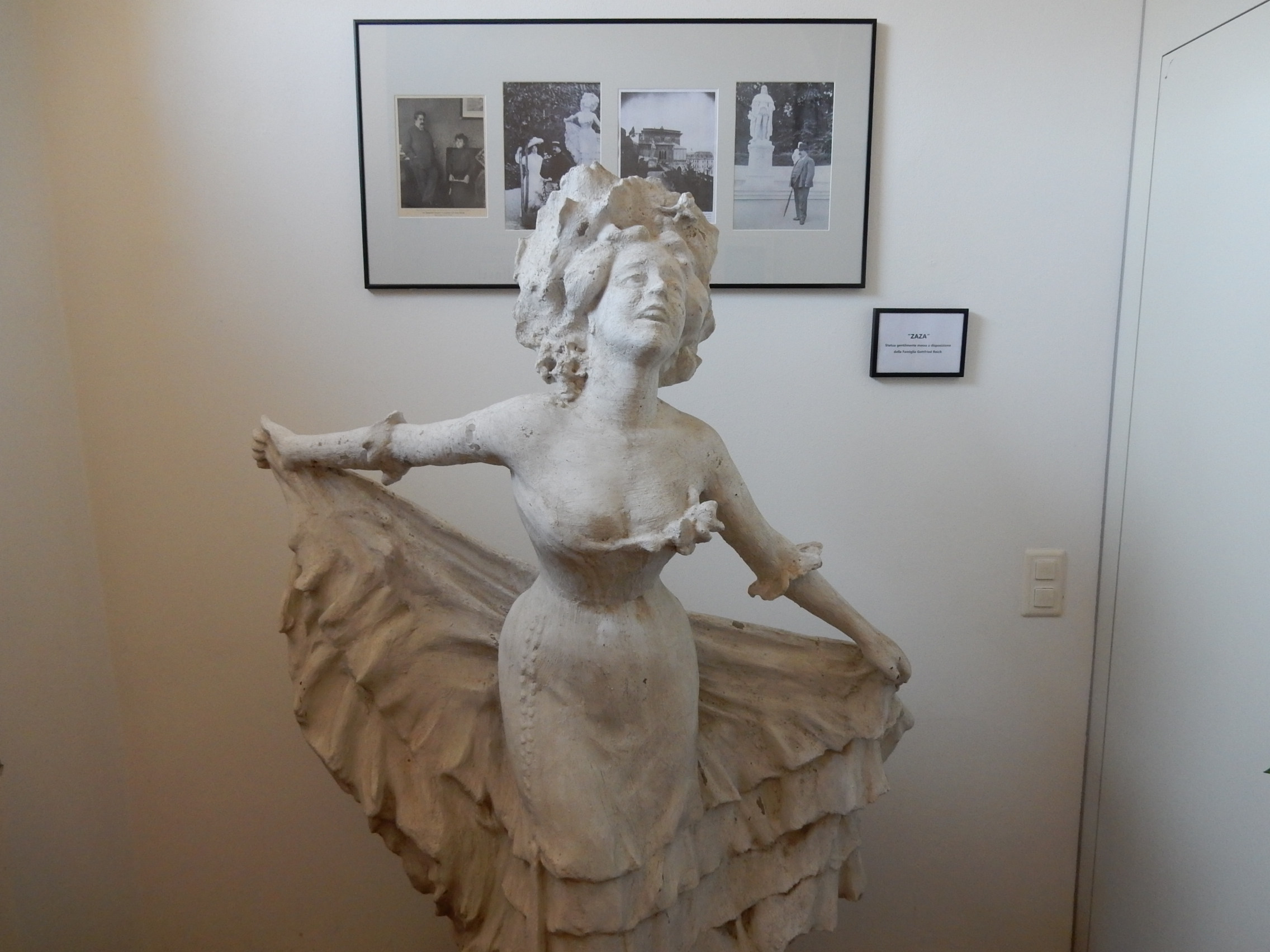 Vor Jahren hatten wir das Glück gehabt; die Villa Leoncavallo von innen besichtigen zu dürfen: Das Musikzimmer des Meister mit der Galerie, auf der einst sein Flügel stand; das prunkvolle Schlafgemach mit dem blau-goldenen Sternenhimmel; die Wandgemälde mit den Szenen aus seinen Opern, die die Eingangsräume schmückten. Der Park war wundervoll und verwildert. Im geheimnisvollen grüne Dickicht stand düster der "Roland von Berlin", ein Geschenk des letzten deutschen Kaisers an Leoncavallo, nachdem dieser die Auftragsoper mit dem gleichen Namen vollendet hatte. Die Ritterfigur in diesem südländischen Garten mit seinen Palmen war ein recht phantastischer Anblick. Hinter dem Haus aber stand die reizvolle Jugendstil-Figur der Zazà, eine Zementgussplastik, die mit beiden Händen ihr plissiertes Gewand seitwärts ausbreitete. Sie trug ein zierliches Hütchen, der Mund war leicht geöffnet und sie lächelte. Von ihr soll hier die Rede sein, denn sie wurde unter recht abenteuerlichen Umständen von der Zerstörung gerettet.